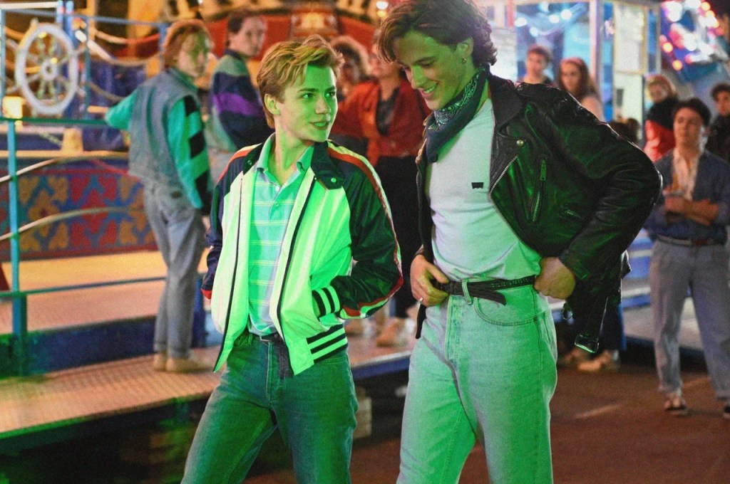 In contrast to the “good boy”, fascinated by the topic of death, Benjamin Voisin, who demolishes everything in his path, is striking. His David is not a rebel at all, but a person living right here and now. He seems handsome with a completely imperfect face, and his movements, sharpness, eyes and an ocean of pain inside, he breaks the idyllic picture of the film. And here we have the neon lights of a disco ball and Alex swirls in this whirlpool of love, freedom and risk, so typical of the epoch of the 1980s.