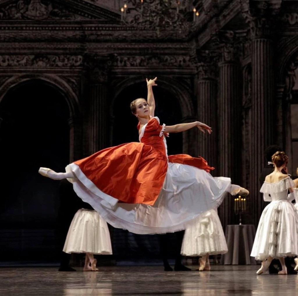 The match between fragile femininity and inner strength, love and hatred, passion and purity inside Madame de Rênal performed by Dorothée Gilbert is amazing. The Paris Opera Ballet étoile dances and acts all the spectre of emotions with the ideal technical part. Her four Pas de Deux with Hugo Marchand are fascinating: natural, sensual and very technically clean and wonderfully harmonious in each movement.